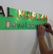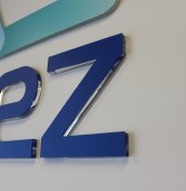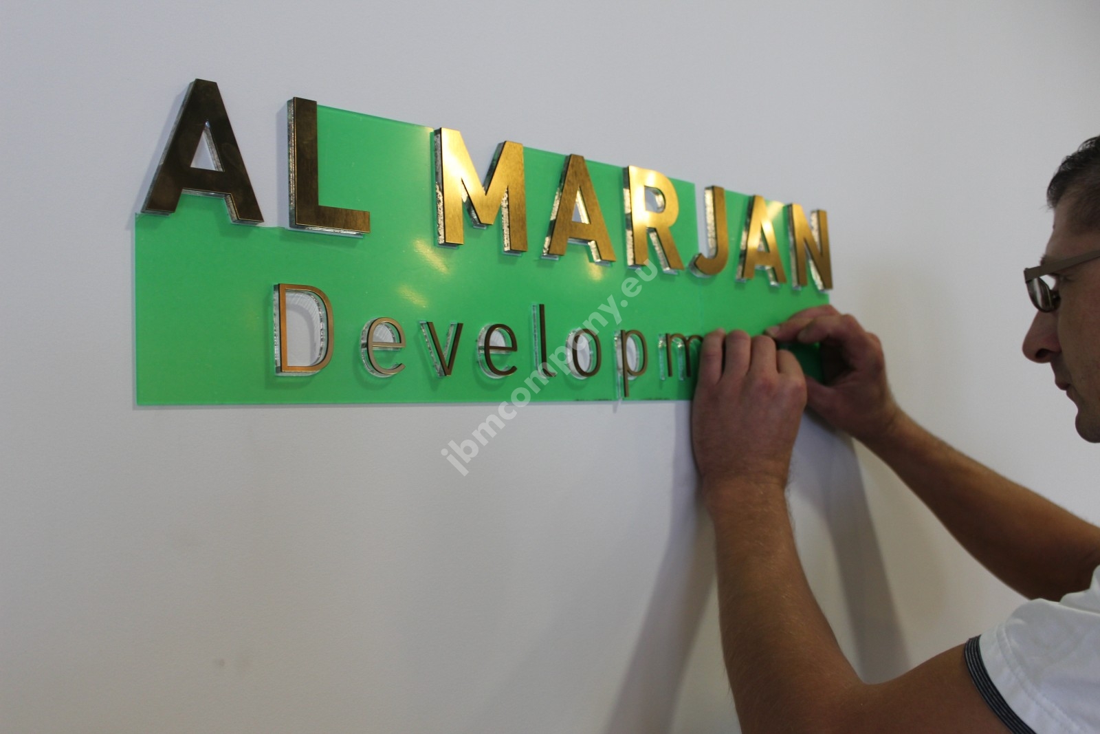 Litery idealnie sprawdzają się jako logo na recepcję, podkreślając profesjonalny charakter przestrzeni.