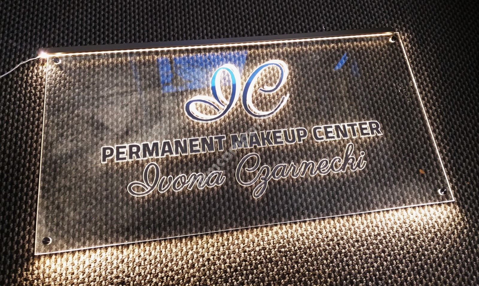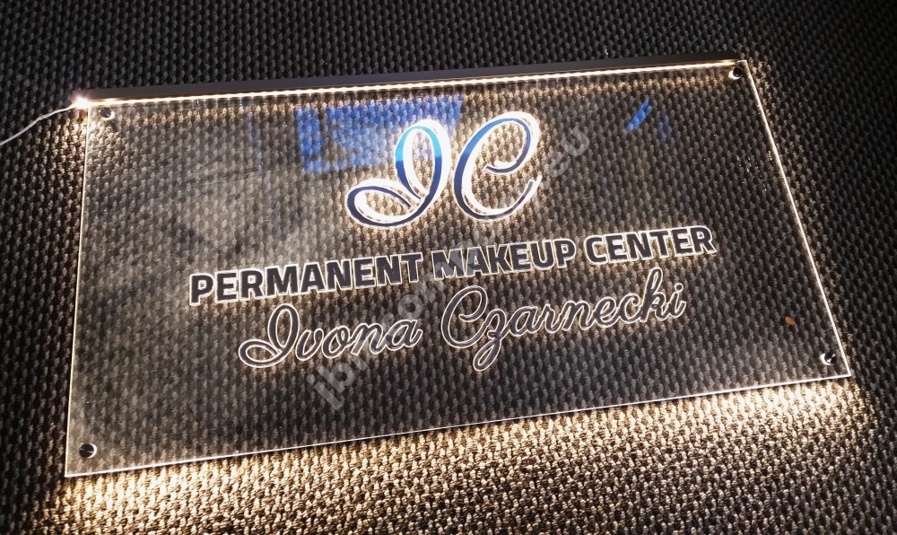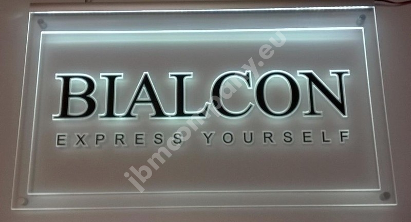 Prezentery LED wykonane z szkła akrylowego o grubości 6 mm. Grafika nadrukowana, a następnie grawerowana od spodu po obrysach dzięki czemu efekt podświetlenia jest bardzo wyraźny. Dopełnienie tworzą anodowane profile aluminiowe. Podświetlane są ledami RGB, które można sterować pilotem. Całość jest trwała i estetyczna.