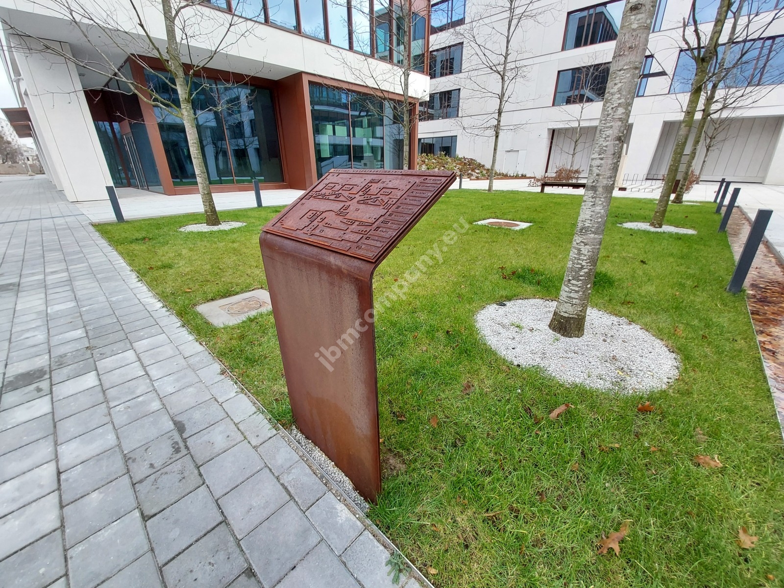Standardowy rozmiar mapy to 600 x 400 mm na elewację lub na stendzie.