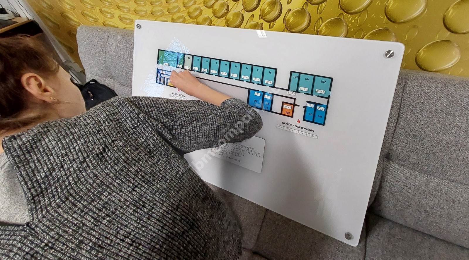 Mapy multisensoryczne pozwalają niewidomym samodzielne oreinetowanie się w układzie budynku a pismo w alfabecie braillea dodatkowo pozwalają odczytywanie przez niewidomych informacji zawartych na planie.