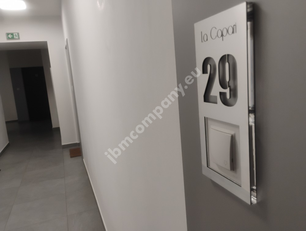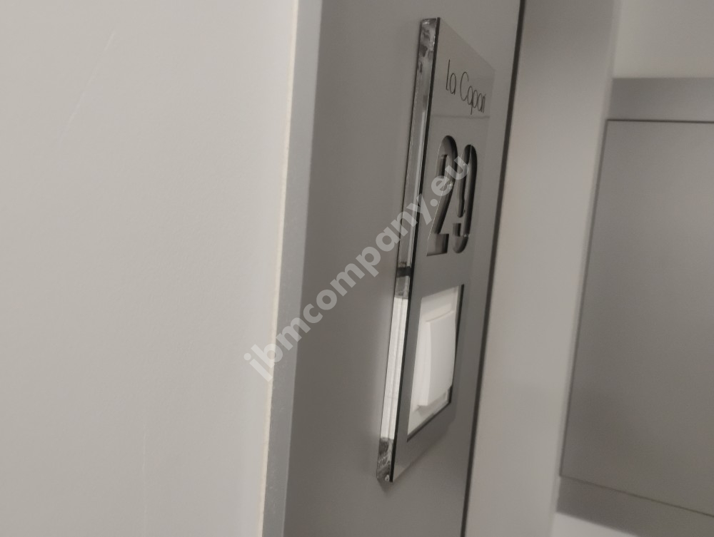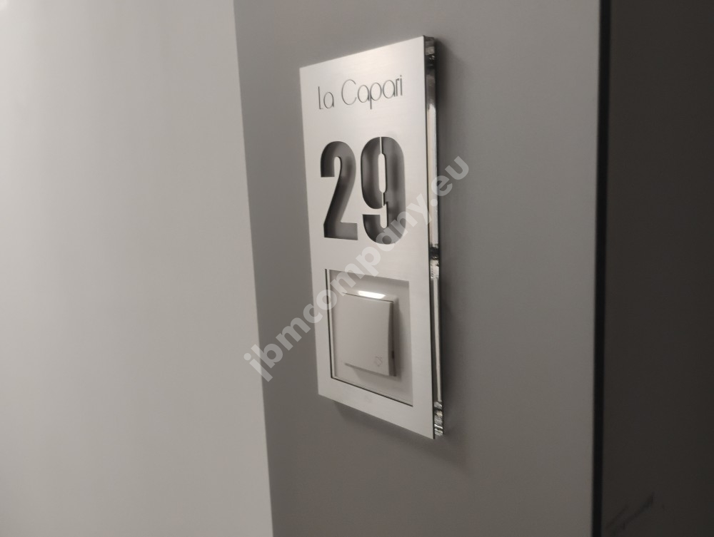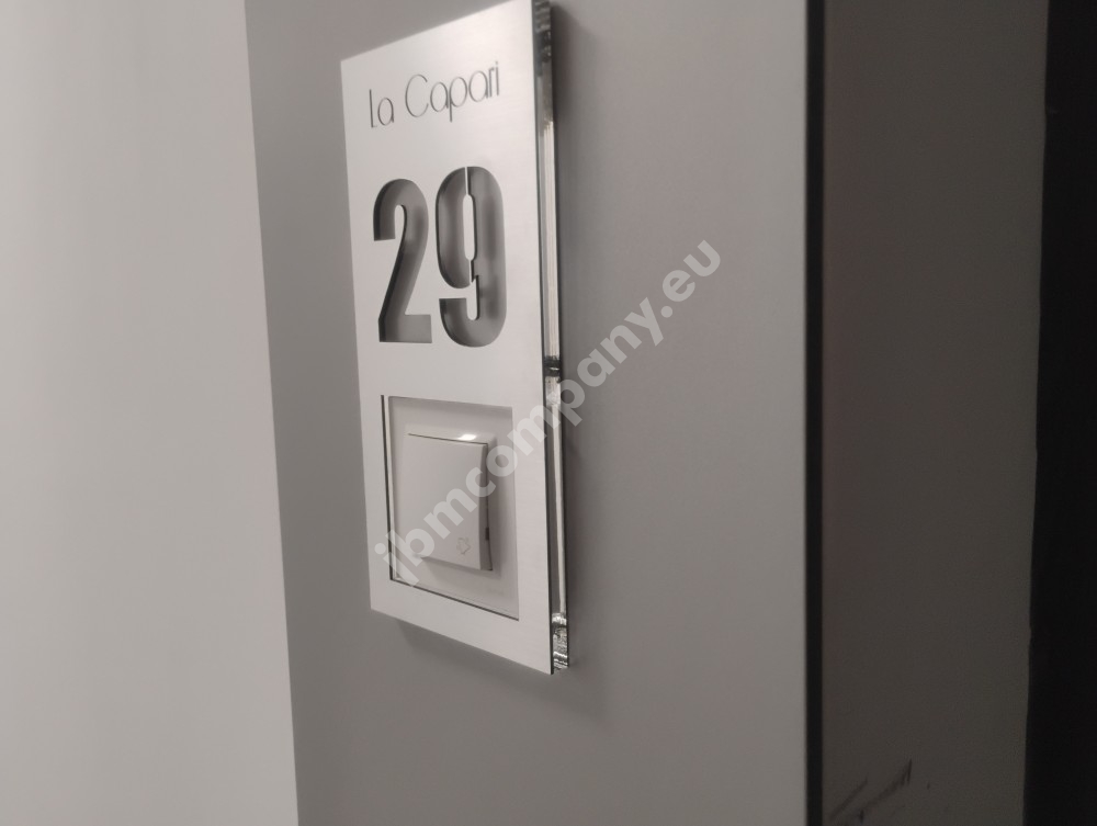 Oprócz numeru mieszkania / lokalu możemy wgrawerować logo, nazwę.
