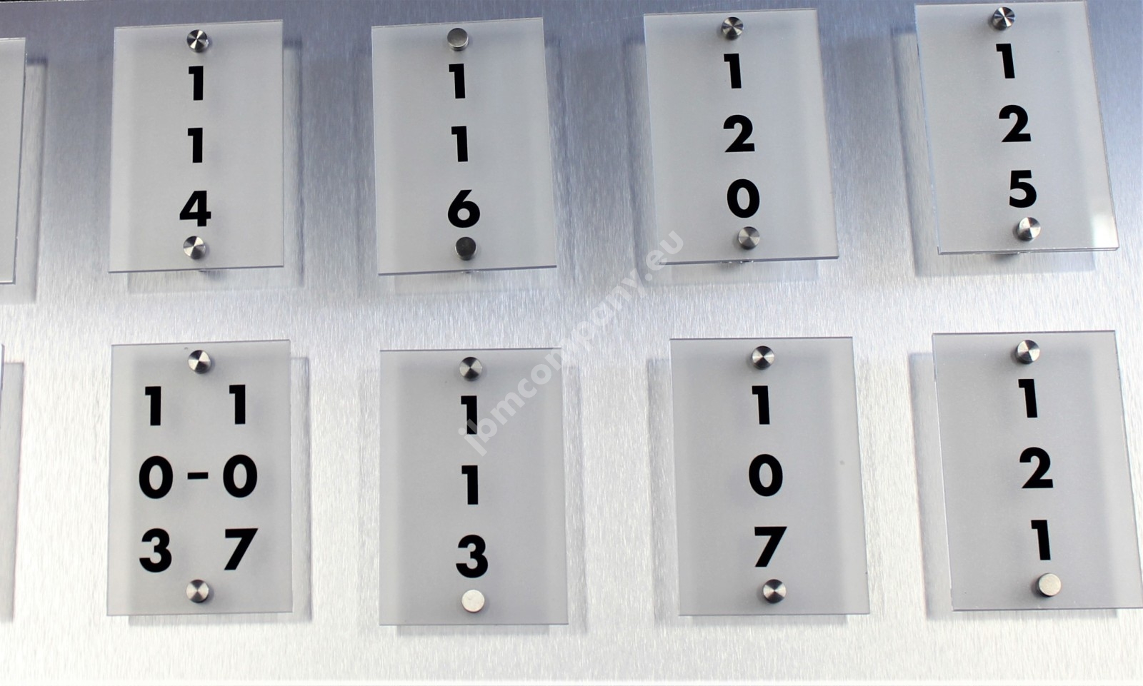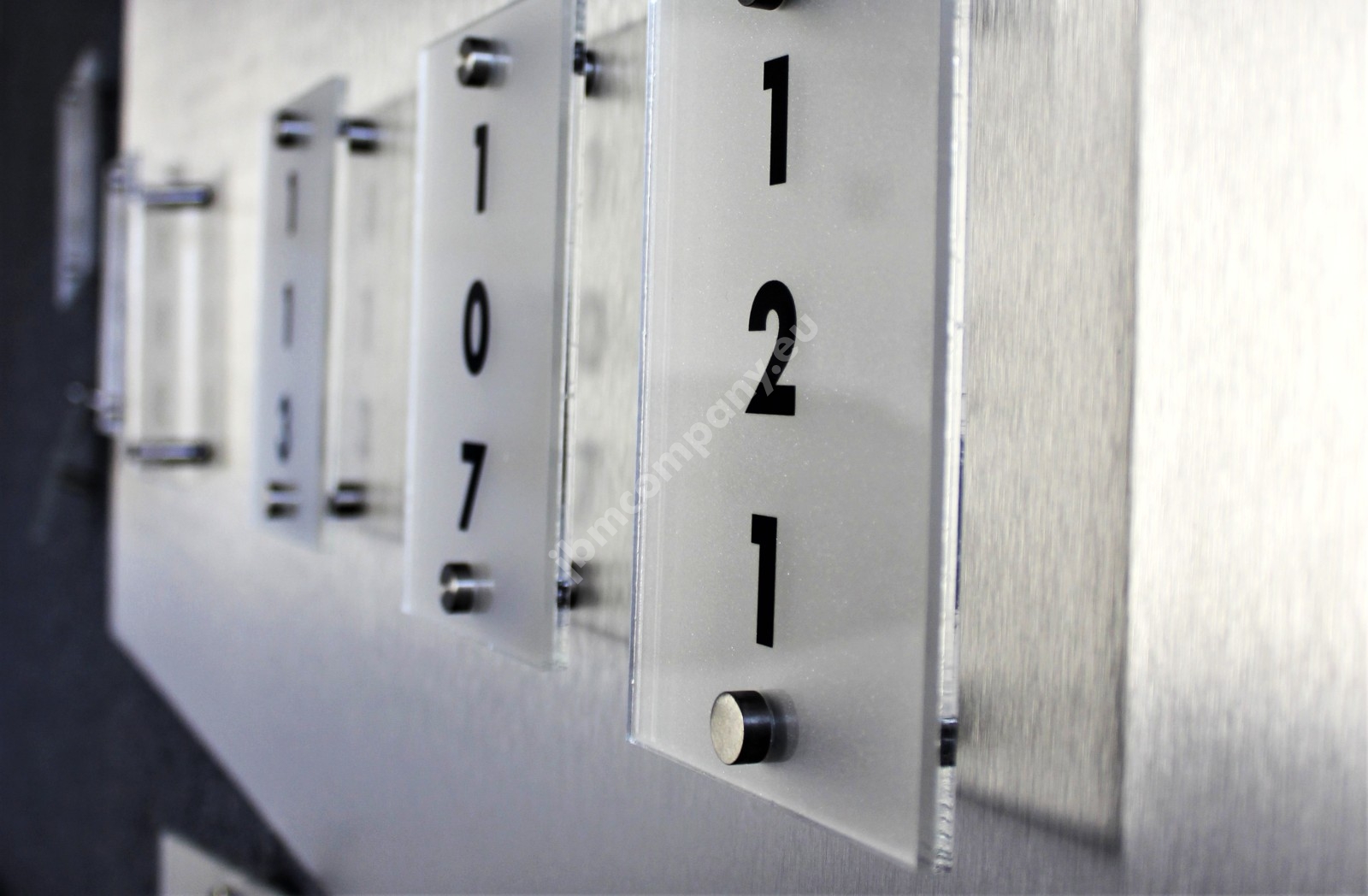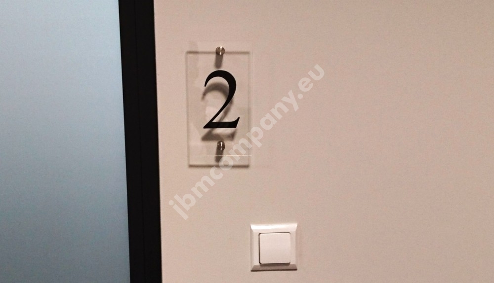 Tabliczki z numeracją pokoi umieszczone obok drzwi.